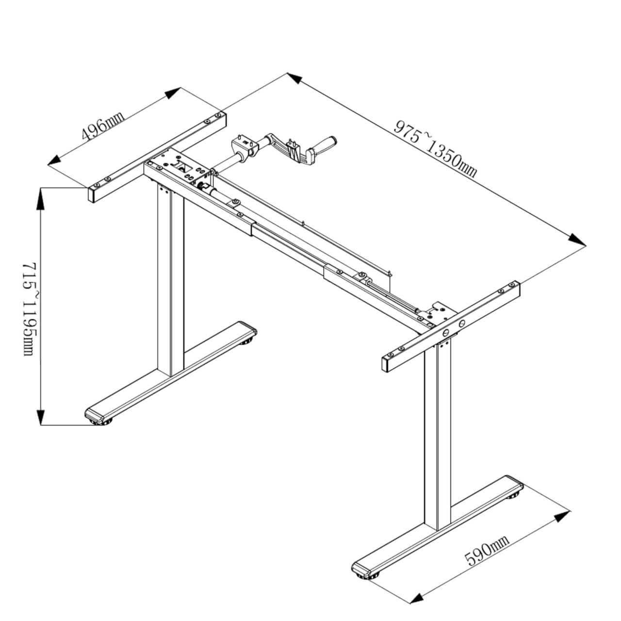 ✓ 1 rotire a mânerului ridică sau coboară biroul cu 10 mm.