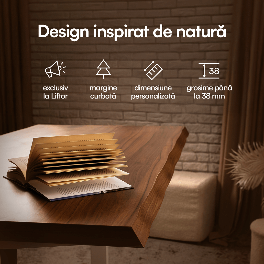 ✓ Fiecare blat este realizat în tâmplăria noastră din materiale certificate, ecologice, cu atenție la detalii și durabilitate pe termen lung.