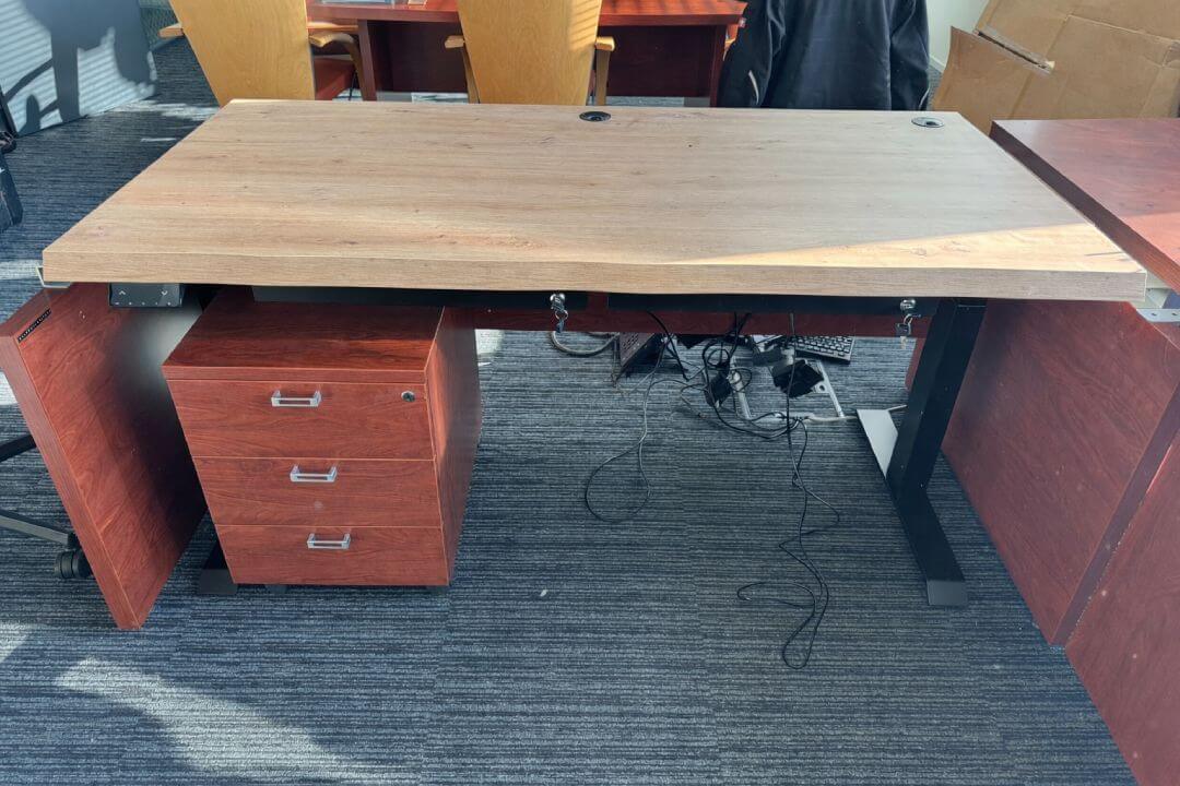 Cadrul solid, de aproape 36 kg, susține fără probleme până la 150 kg – biroul rămâne stabil chiar și la înălțimea maximă.