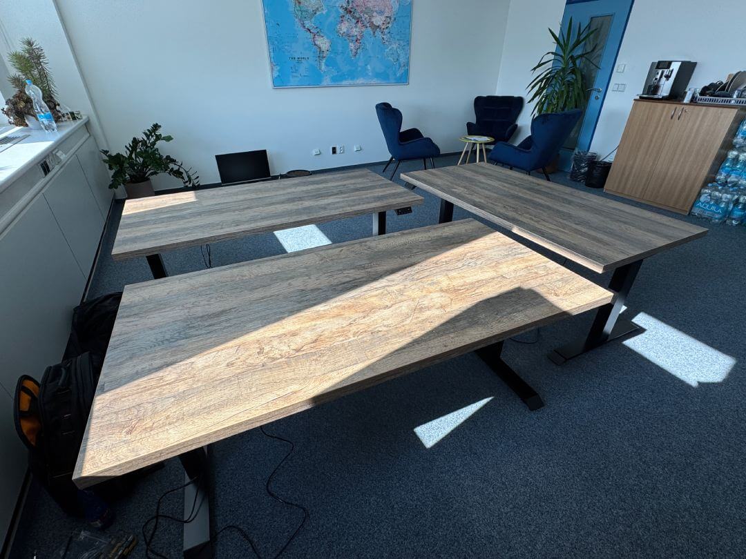 Blaturile noastre de masă nu au găuri pre-găurite. Acest lucru vă permite să alegeți spațierea bazei și plasarea driverului pentru a vă satisface ideile, nevoile și cerințele exacte de instalare și control. Fiecare client preferă o spațiere diferită a bazei mesei și o eventuală suprapunere a marginii blatului de masă față de picioarele mesei, precum și o plasare diferită a driverului. Din acest motiv, plăcile nu au găuri pre-perforate. Nu trebuie să vă faceți griji cu privire la o asamblare complicată, trebuie doar să așezați placa pe podea, să puneți baza cu susul în jos pe blatul mesei, să selectați amplasarea dorită și să înșurubați placa și driverul în poziție cu o șurubelniță obișnuită sau fără fir.