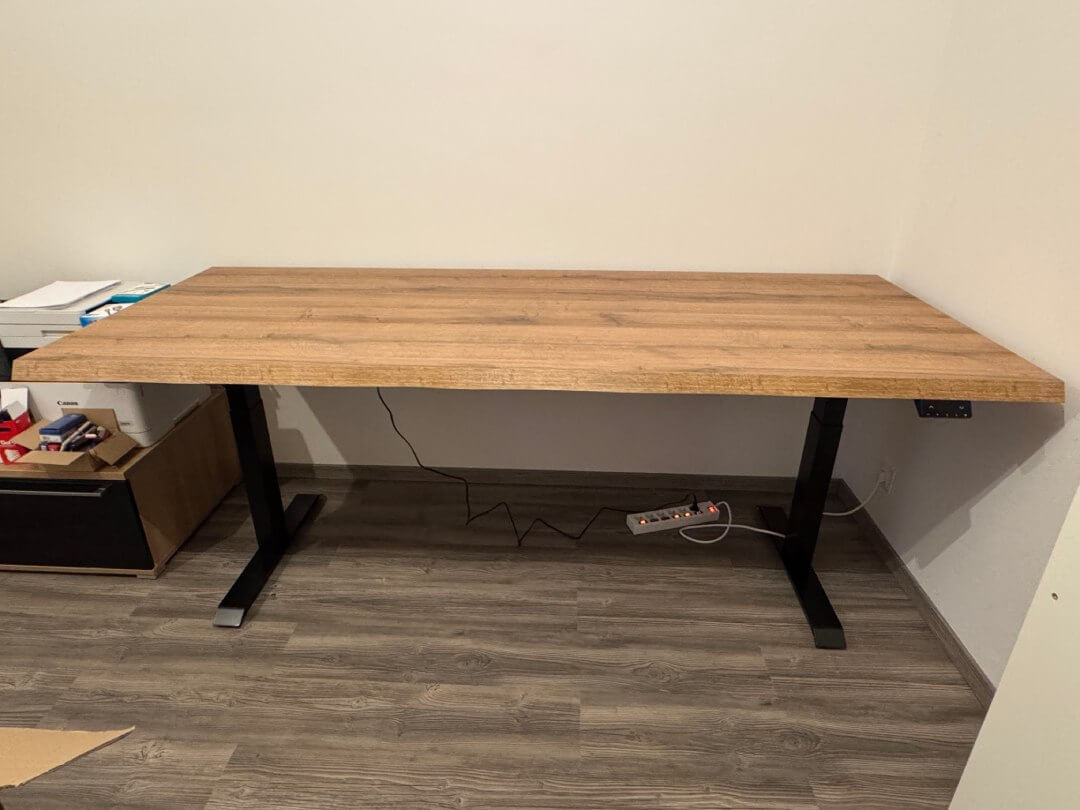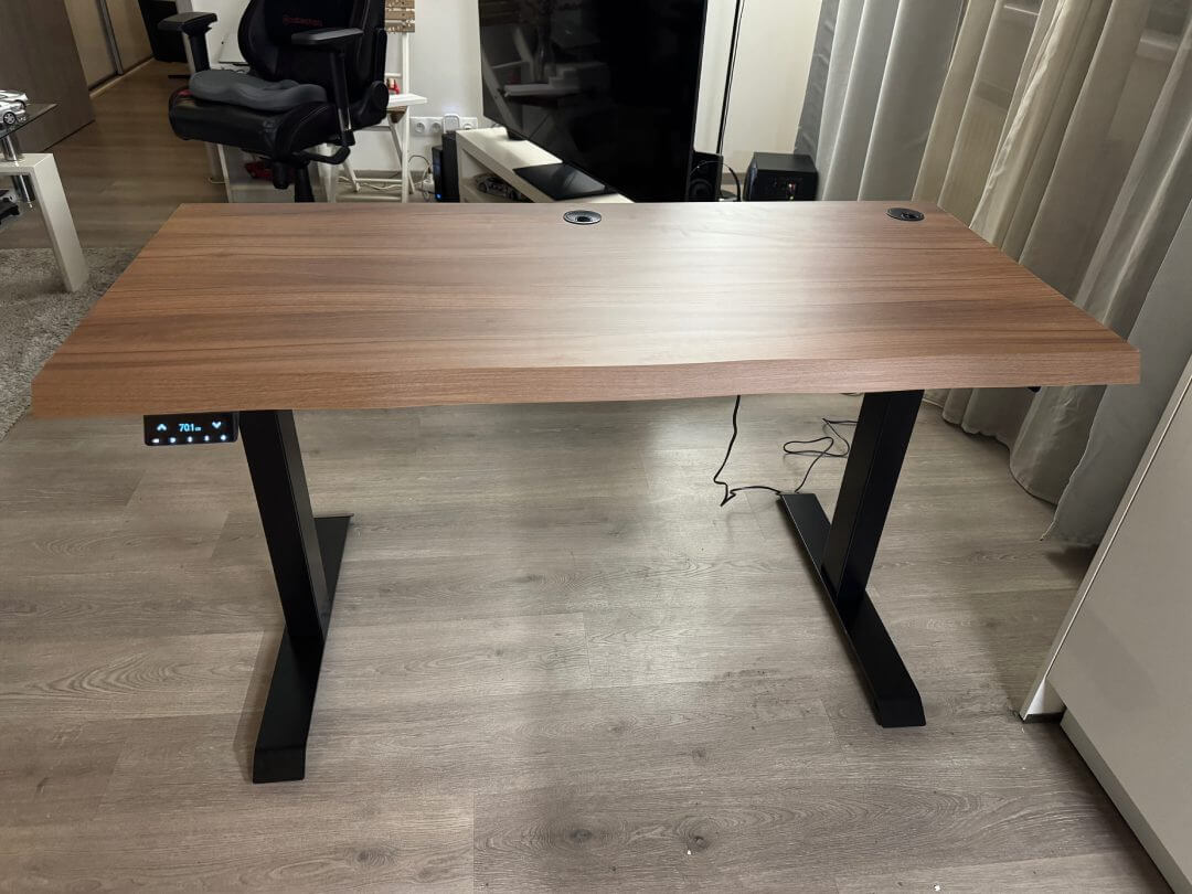 Cadrul solid, de aproape 36 kg, susține fără probleme până la 150 kg – biroul rămâne stabil chiar și la înălțimea maximă.