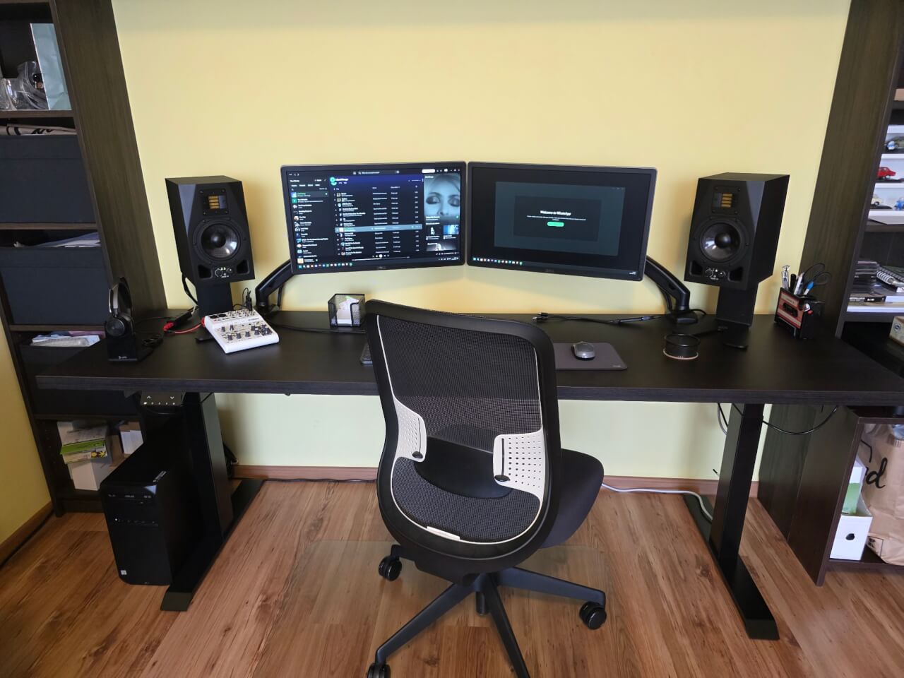 Cadrul solid, de aproape 36 kg, susține fără probleme până la 150 kg – biroul rămâne stabil chiar și la înălțimea maximă.
