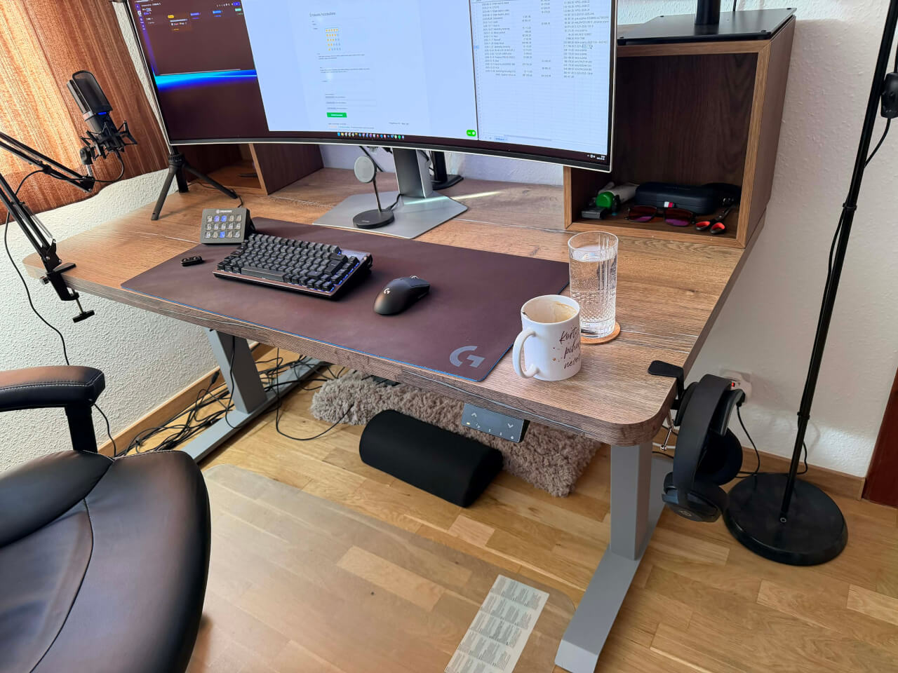 Cadrul solid, de aproape 36 kg, susține fără probleme până la 150 kg – biroul rămâne stabil chiar și la înălțimea maximă.