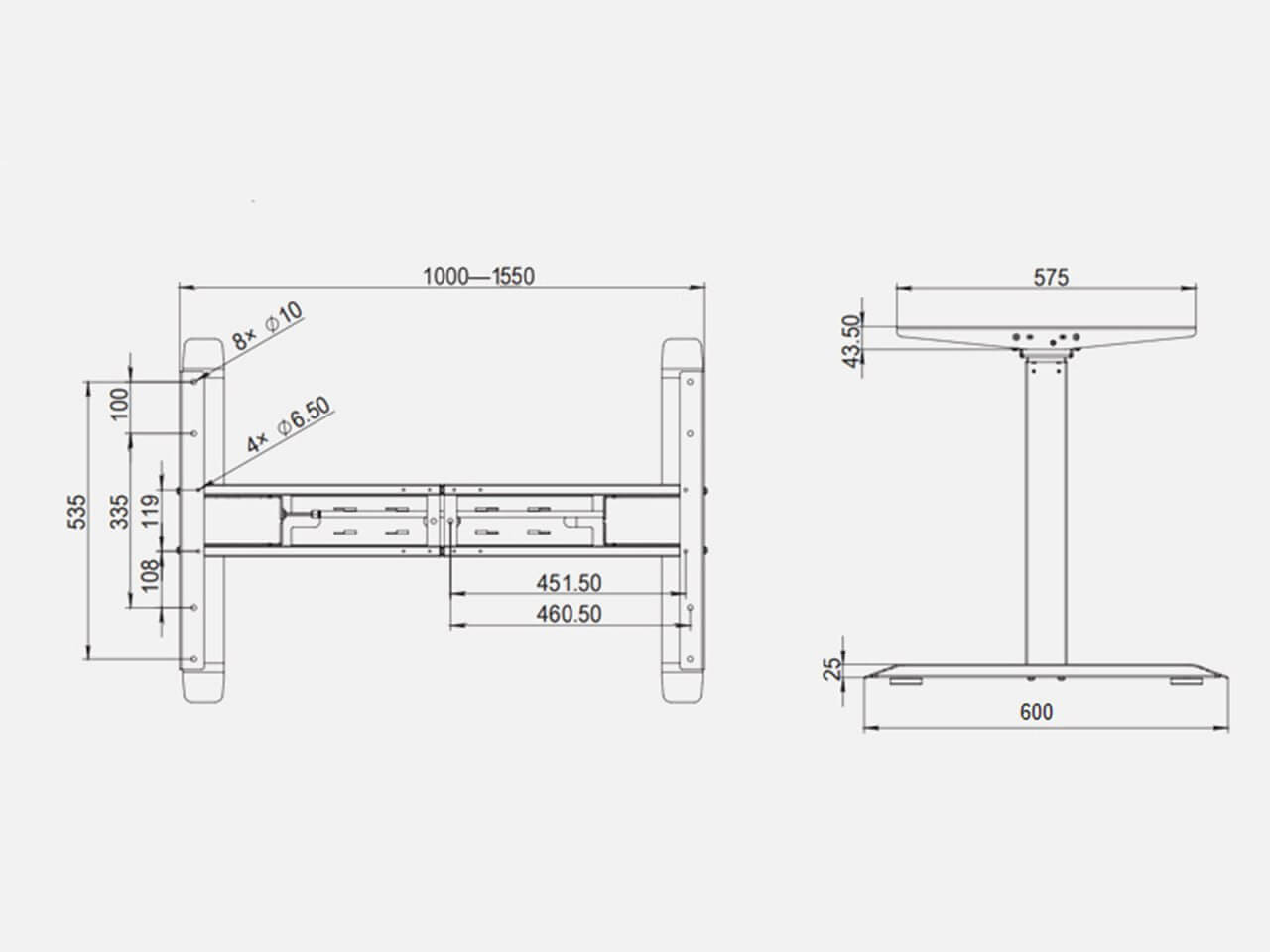 Liftor Rise are picioare stabile cu 2 segmente, un controler de memorie cu afișaj LED, se ridică cu un motor la 20 mm/s și poate fi încărcat cu până la 100 kg.