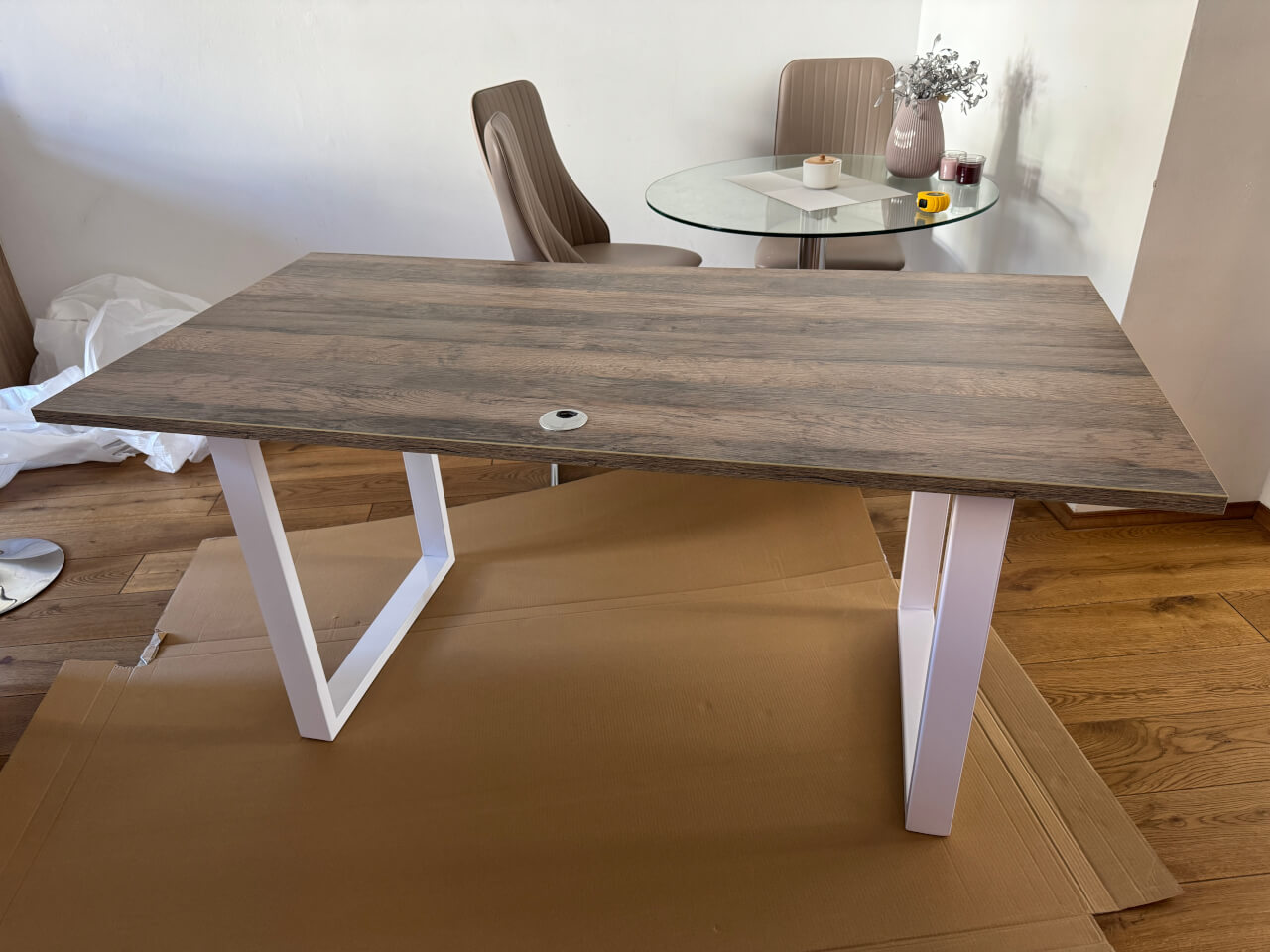 Livrăm birourile dezasamblate în componentele lor individuale. Acest lucru reduce costurile de transport și salvează mediul înconjurător - livratorul va transporta mult mai multe mese în formă dezasamblată. Sunt incluse instrucțiuni de asamblare detaliate și ușor de înțeles. Este nevoie de aproximativ 20 de minute pentru a asambla masa și aveți nevoie de o șurubelniță - alte unelte sunt incluse.