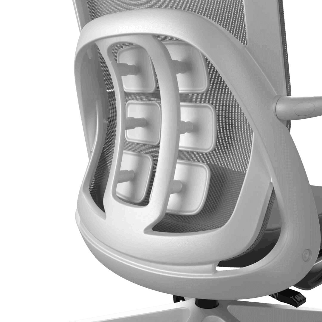 Spatele scaunului este prevăzut cu elemente profilate care oferă sprijin direcționat în zonele cheie ale spatelui. Rezultă astfel o distribuție uniformă a presiunii și o susținere optimă pentru zona lombară și partea superioară a spatelui, ceea ce ajută la postura corectă și reduce oboseala în timpul șederii pe tot parcursul zilei, oferindu-vă o ședere sănătoasă.